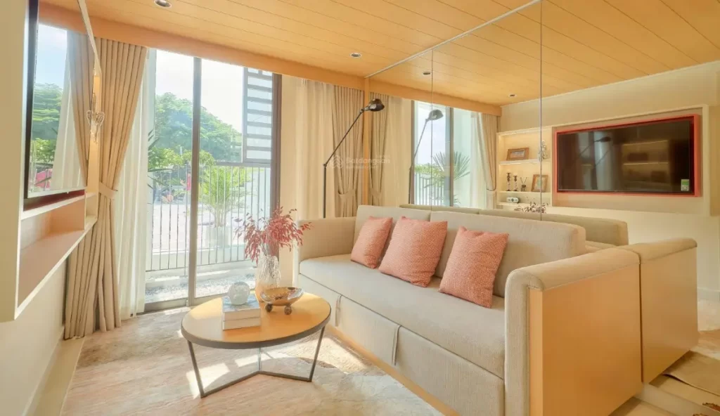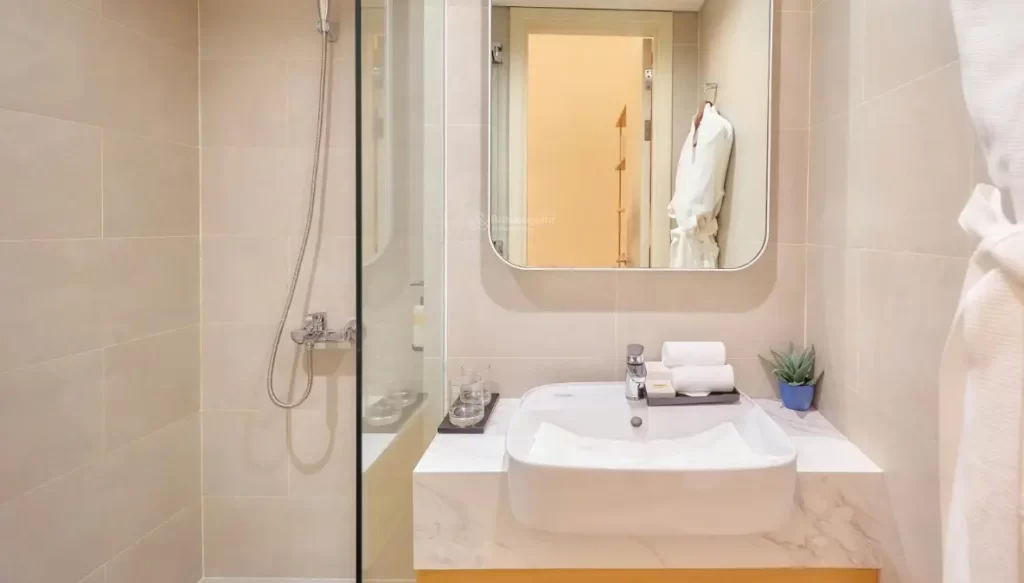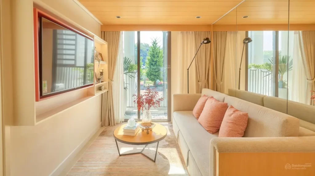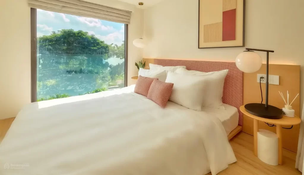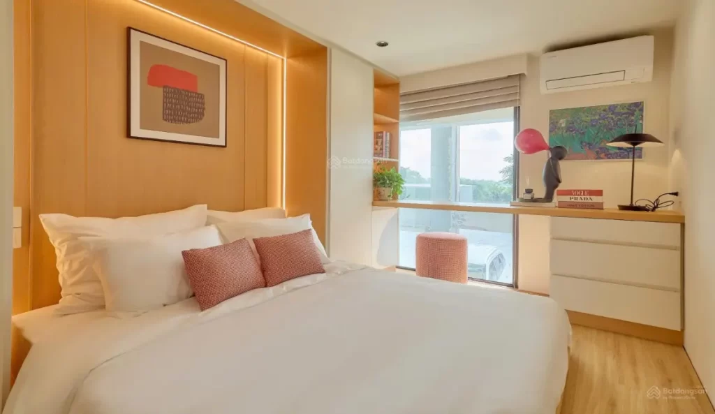 • Phòng ngủ: Giường, đệm, tủ quần áo âm tường, bàn trang điểm/làm việc, điều hòa.