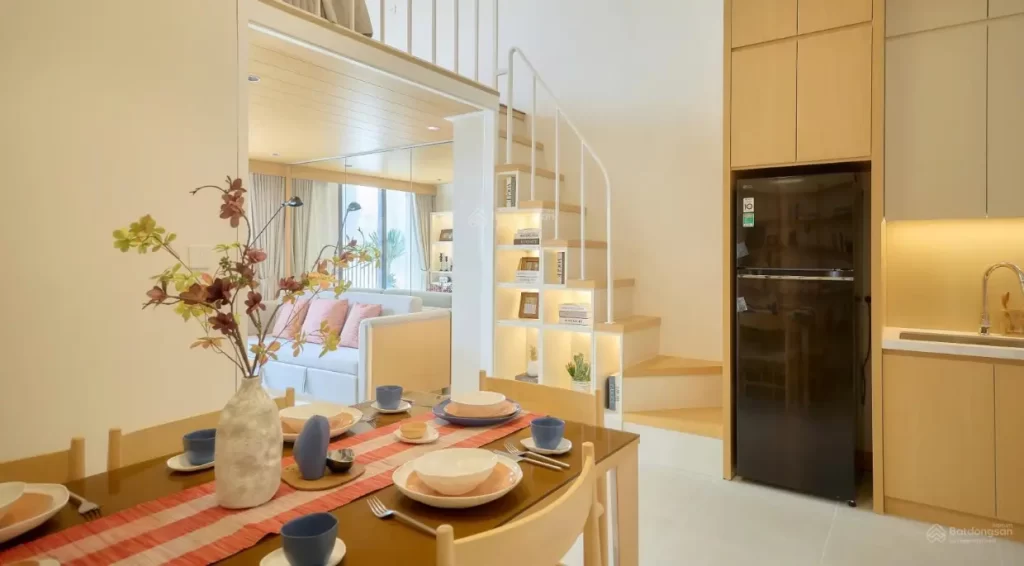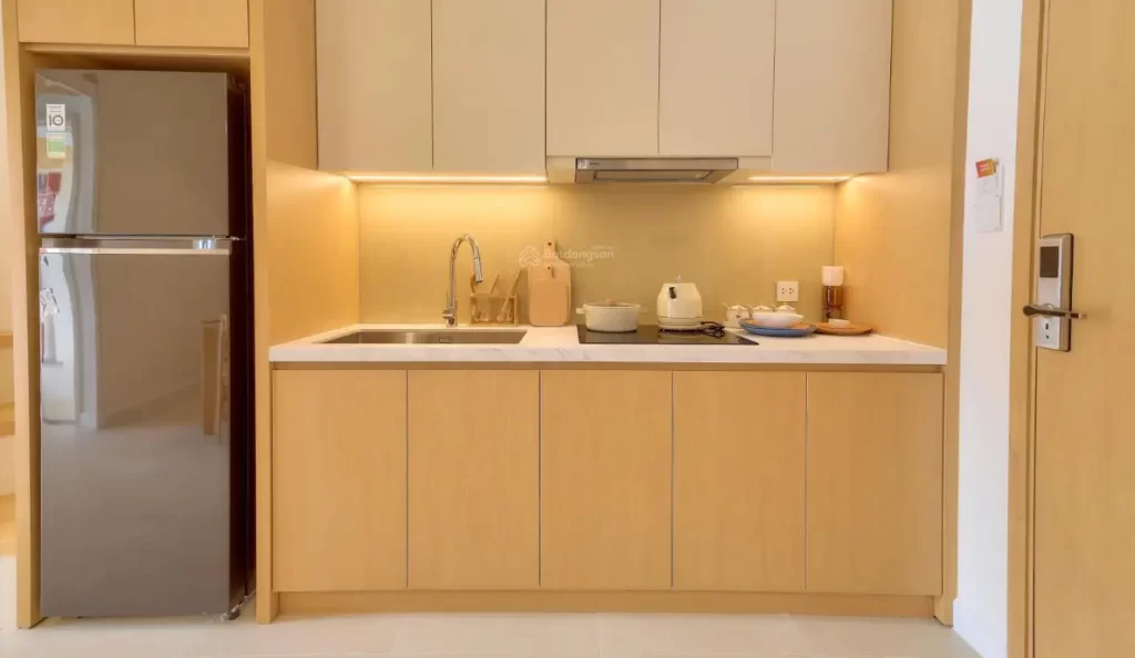 • Phòng bếp: Tủ bếp trên/dưới, bếp từ/hồng ngoại, máy hút mùi, tủ lạnh, lò vi sóng/nồi chiên không dầu.